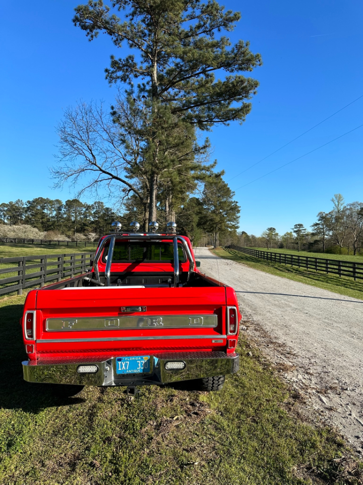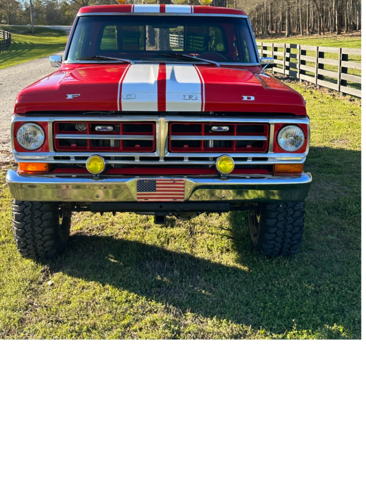 Every Classic Vehicle has a story. This F-250 4x4 Pickup has a great one. After a search for a nice clean truck, this example was found from a long term owner. Unfortunately, on the way home, the carburetor decided it had enough and the inlet fitting fell out with fuel igniting the complete engine compartment. Luckily the fire department came quickly and the rest of the truck was spared. That did not deter from the love of wanting this truck. So our current owner decided to make this a really cool truck and the project began. The final results is a really cool "Restro-Mod" pickup. With a Marti Report showing good bones to start with, this red beauty was transformed into a great driving and reliable vehicle. On top of that, it was completely repainted in a high quality re-spray and a new interior fitted. But the real work is under the hood. A mild performance 427 cubic inch Ford Create Motor was sourced. With no expensed spared, the truck was completely re-wired and it was important that reliability and comfort were prioritized. All this is packaged in a really fantastic build that is completely documented. Even a brand new Yeti Cooler is locked down to the rear bed. Make this your truck at less than half of what it would take to build.Visit Steering Wheel, Inc. online at www.steeringwheelfl.com to see more pictures of this vehicle or call us at 954-530-0535 today to schedule your test drive.